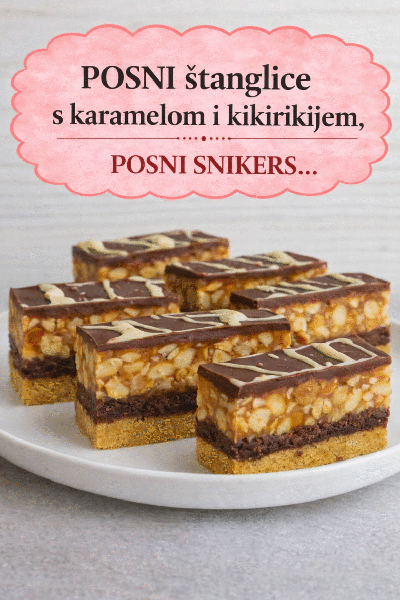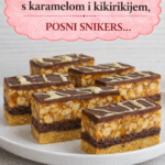 Posne štanglice s karamelom i kikirikijem su hrskav, kremast i neodoljiv kolač koji se bukvalno topi u ustima. Spoj čokoladnog donjeg sloja, bogatog karamela sa kikirikijem i glatke čokoladne glazure daje savršenu ravnotežu slatkoće i teksture. Idealan su izbor za slavlje, praznike ili kada želite nešto posebno bez jaja i mleka. SASTOJCI Donji sloj 200 …