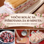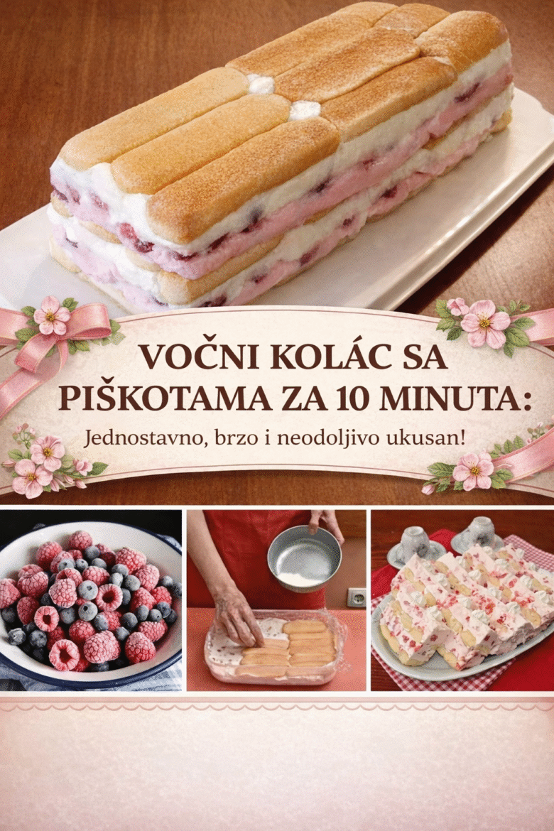 POTREBNI SASTOJCI: 2 posude keksa 200 mililitara mlijeka Potrebno za fil: 100 grama margarina 100 grama šećera u prahu 3 čaše kiselog vrhnja 500 mililitara slatkog vrhnja 1 paketić želatine (preporuča se biljna alternativa poput agara) 500 grama željenog voća (kao što su jagode ili maline) KAKO SE PRIPREMA VOĆNI KOLAČ SA PIŠKOTAMA? U zdjelu …