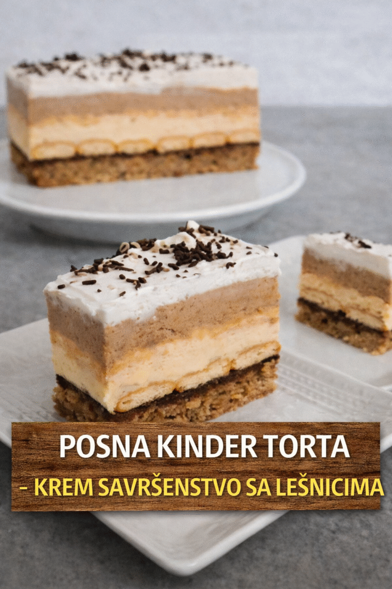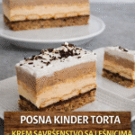 Posna Kinder torta je pravo kremasto savršenstvo sa lešnicima, torta koja izgledom i mirisom podseća na omiljenu Kinder poslasticu. Hrskava korica sa pečenim lešnicima, bogat puding fil podeljen na beli i čokoladni deo, sloj natopljenog keksa i lagani šlag daju torti savršen presek i pun, ali nežan ukus. Idealna je za slavlje, praznike ili kada …