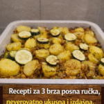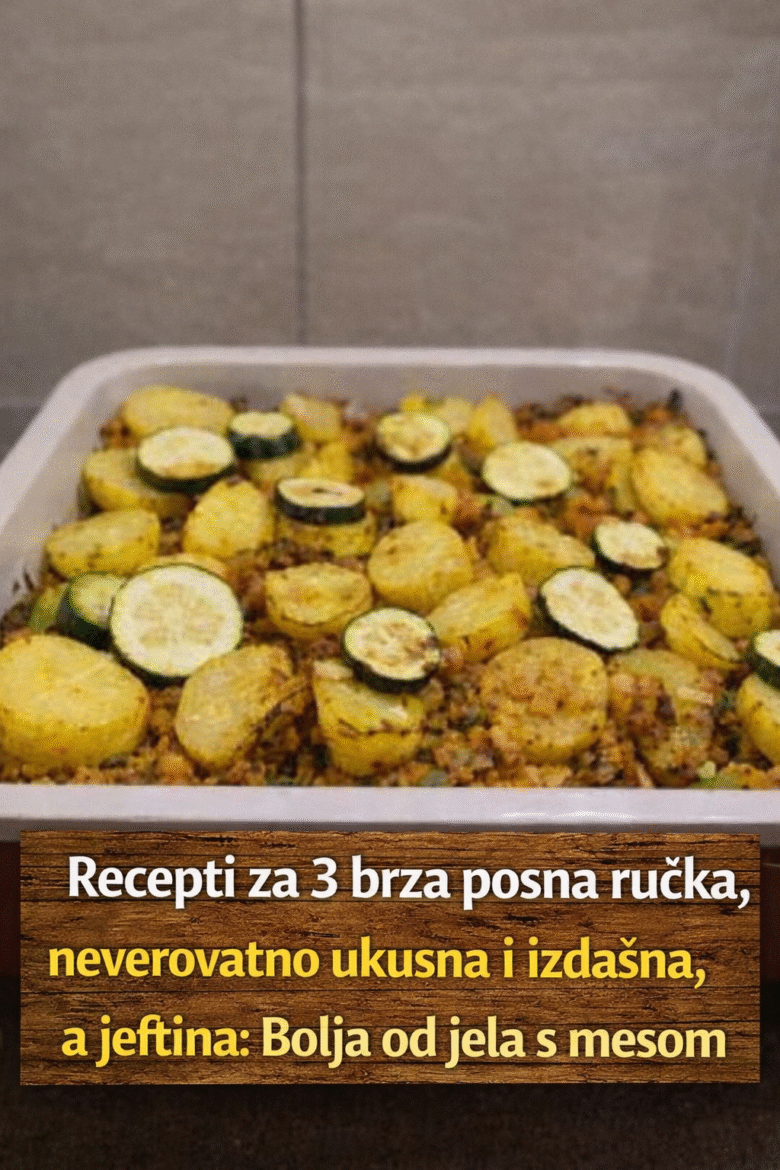 1. Musaka od tikvica i krompira Sastojci: 2 srednje tikvice 3 srednja krompira 1 glavica luka 100 g sojinih ljuspica (ili 200 g seckanih pečuraka) 3 kašike ulja 1 kašičica soli 1/2 kašičice bibera Foto: Printscreen Youtube/ Moja kuhinja Tanja Priprema: Tikvice i krompir iseckajte na tanke kriške. Sojine ljuspice prelijte toplom vodom i ostavite da …