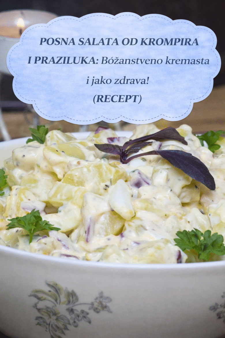 Sastojci: 3 srednja krompira 1 veći struk praziluka 200 g posnog majoneza malo bibera i soli Priprema: Krompir skuvajte sa ljuskom, ohladite pa oljuštite i iseckajte na sitnije kockice. Praziluk takođe isecite na sitno, posolite i izgnječite malo rukama da se opusti. Pomešajte krompir i praziluk sa majonezom, pobiberite po ukusu i to je to. Uživajte, salata …