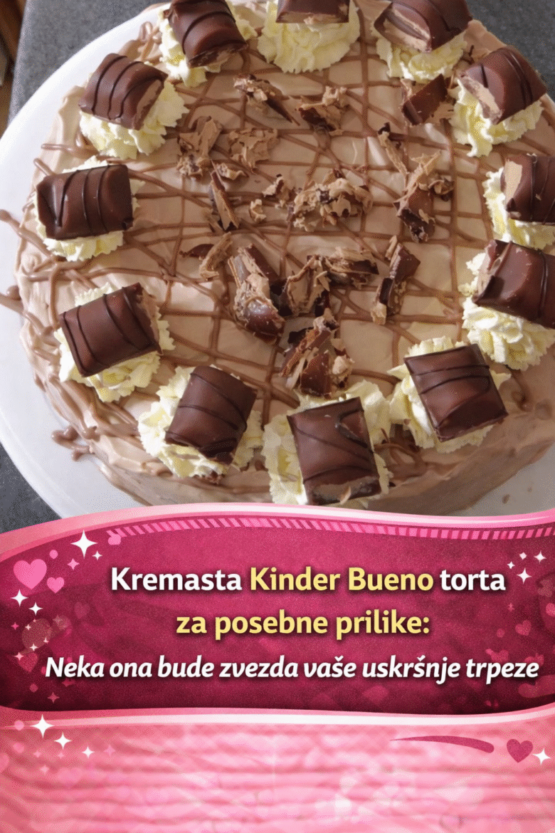 Kinder Bueno torta je neverovatno kremasta, bogata i puna ukusa lešnika i čokolade. Kombinacija bele čokolade, krem sira i hrskavih komadića Bueno čokoladica daje savršen balans teksture i ukusa. Idealna je za rođendane, proslave ili kada želiš nešto posebno bez uključivanja rerne. A biće zvezda uskršnje trpeze ukoliko odlučite da je pravite za ovaj veliki praznik. Osnovne informacije …