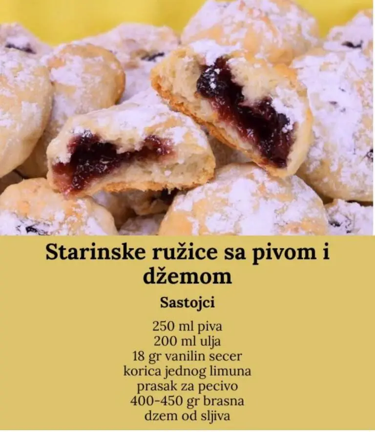 Ruzice sa dzemom u posnoj varijanti su lepi kolaci koji se tope u ustima. Sastojci: 250 ml piva 200 ml ulja 18 gr vanilin secer korica jednog limuna prasak za pecivo 400-450 gr brasna dzem od sljiva DETALJAN OPIS PRIPREME POGLEDAJTE U VIDEU ISPOD REKLAMA DOLE: …