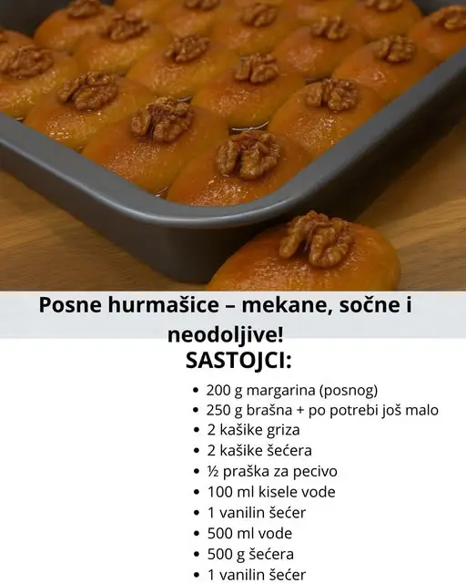 Ako tražite savršeni recept za posne hurmašice koje su mekane, mirisne i dugo ostaju sočne, na pravom ste mestu. Ovaj tradicionalni kolač u posnoj varijanti ne razlikuje se po ukusu od klasičnog – naprotiv, mnogi tvrde da je još lepši! Sastojci za testo: 200 g margarina (posnog) 250 g brašna + po potrebi još malo 2 …