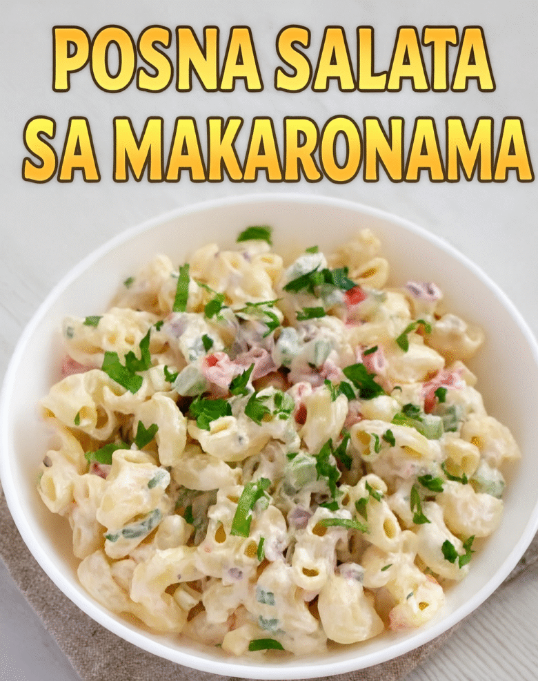 Sastojci: 230 g makarona 2 celera, sitno iseckana 1/2 srednje crvene paprike, sitno iseckane 1/4 malog crvenog luka, sitno iseckanog 60 g seckanih krastavčića 60 g sitno naseckane sveže mirođije Za preliv: 240 g veganskog majoneza 2 kašike soka od kiselih krastavaca 1 kašika jabukovog sirćeta 1 kašika šećera 2 kašičice senfa 1/4 kašičice soli …