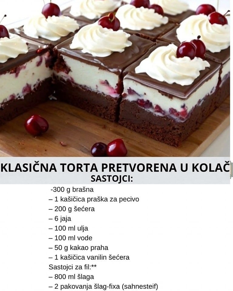 Ova Schwarzwälder Torte vom Blech kombinuje klasičnu eleganciju popularne torte sa praktičnom pripremom. Savršen je za velike priredbe ili opuštene popodnevne užine, jer pruža ukusnu mešavinu sočnog čokoladnog biskvita, svežih višanja i vazdušaste šlaga. Sa jednostavnim koracima, brzo ćete pripremiti ovaj desert-klasik koji će oduševiti vaše goste. **Sastojci za biskvit:** – 300 g brašna …