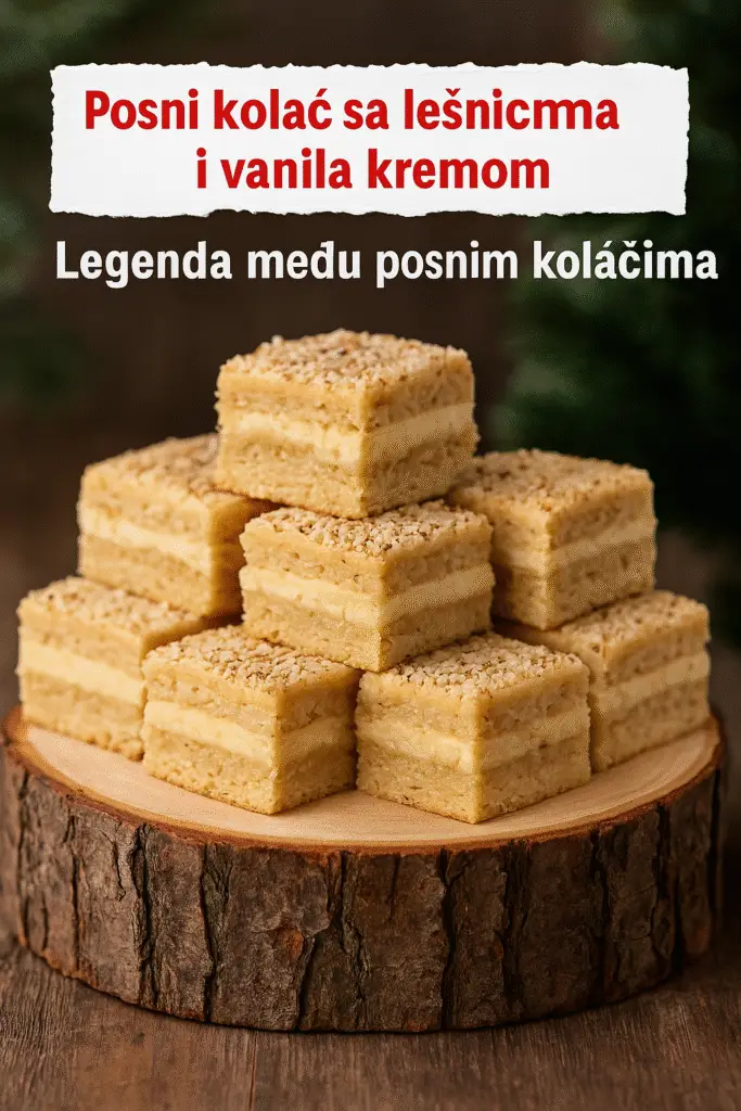 🥥 POSNI KOLAČ SA LEŠNICIMA I VANILA KREMOM Legenda među posnim kolačima – topi se u ustima! 📌 Sastojci Za koru: 300 g brašna 200 g šećera 200 ml vode 150 ml ulja 100 g mlevenih lešnika 1 prašak za pecivo 1 vanilin šećer Za krem: 700 ml biljnog mleka (ili vode) 7 kašika šećera …
