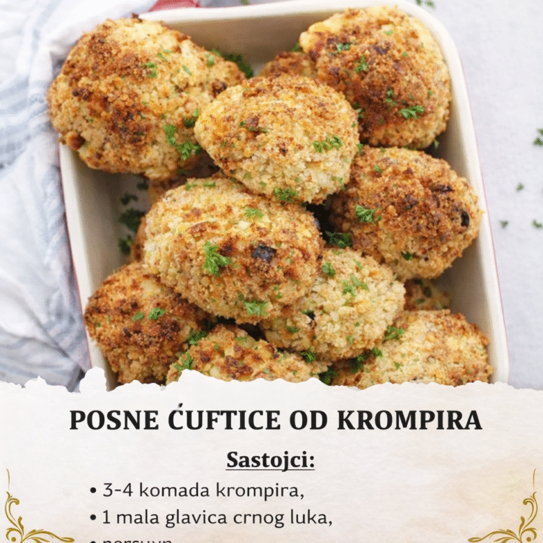 Sastojci za posne ćuftice od krompira: 3-4 komada krompira, 1 mala glaviva crnog luka, peršun, čubar, so, biber, 1 kašika brašna, ulje. Posne ćuftice od krompira se pripremaju na sledeći način: Krompir oljuštite, nasecite na jednake komade i skuvajte ga dok ne omekša. Dobro ocedite vodu i ostavite da se krompir ohladi. Za to vreme luk …