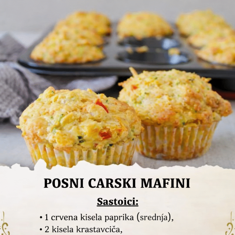 Sastojci za posne carske mafine: 200g tofua, 1 crvena kisela paprika (srednja), 2 kisela krastavčića, 200g brašna, 1 kesica praška za pecivo, 100ml biljnog mleka (sojino, bademovo ili drugo po izboru), 50ml ulja, so i biber po ukusu, 1 kašičica sušenog origana ili drugog začina po izboru. Posni carski mafini se pripremaju na sledeći način: …