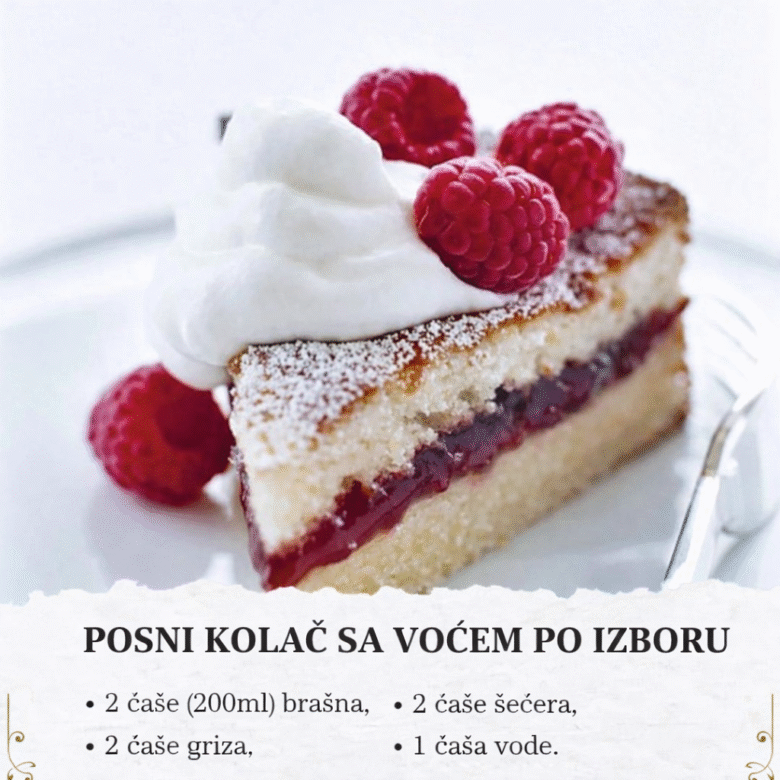 Sastojci za posni kolač sa voćem po izboru: 2 čaše(200ml) brašna, 2 čaše griza, 2 čaše šećera, 1 čaša vode, 150ml ulja (ili nešto malo manje od pune čaše), 1 prašak za pecivo, 2 vanilin šećera, 900g malina ili voća po izboru. Posni kolač sa voćem po izboru se priprema na sledeći način: Voću dodati …