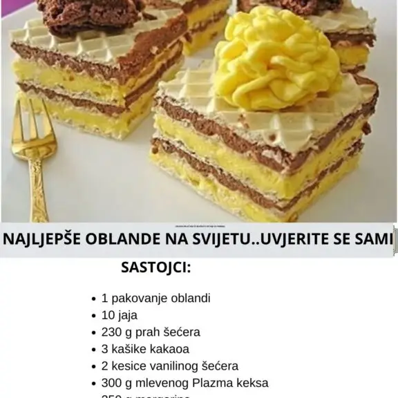 Ovaj čokoladni kolač s Plazma keksom će zasigurno zadovoljiti vašu slatku želju, a proces pripreme će biti i zadovoljstvo i zabava! Uživajte u kreiranju ove poslastice i deljenju sa svojim najmilijima. Potrebni sastojci za najljepše oblatne na svijetu su sledeći: 1 pakovanje oblandi 10 jaja Za I fil je potrebno: 10 belanaca 230 g prah …