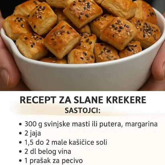 Potrebno je: 300g svinjske masti ili putera, margarina 2 jaja 1,5 do 2 male kašičice soli 2 dl belog vina 1 prašak za pecivo 500g sira 300g krupno mlevenog kikirikija- pečen ili blanširan 700 do 750g brašna Semenje susam, kim, čurokot – dodajte po svom ukusu Formirane oblike peciva premažite sa smesom od jednog jajeta …