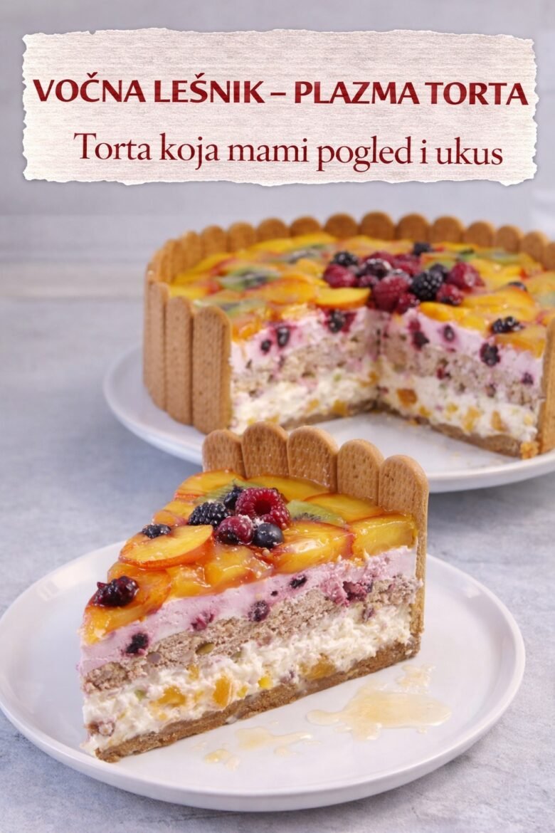 VOĆNA LEŠNIK – PLAZMA TORTA Kremasta, bogata i puna voća – torta za posebne prilike SASTOJCI Podloga 300 g mlevenog Plazma keksa 150 g mlevenih, pečenih lešnika 5 kašika šećera u prahu 250 g otopljenog putera sok od pomorandže (po potrebi) oko 300 g Plazma keksa u komadu 2 kesice 3u1 kafe (ukus po izboru) …