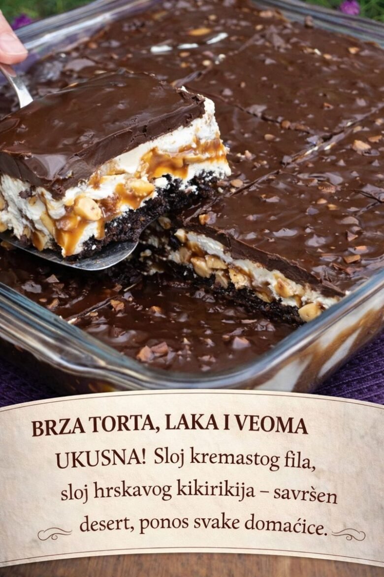 BRZA TORTA, LAKA I VEOMA UKUSNA! Sloj kremastog fila, sloj hrskavog kikirikija – savršen desert, ponos svake domaćice. Ukoliko želite da napravite baš “bogatu” i slojevitu tortu, isprobajte recept za sinekrs tortu koja uspeva baš svima. Sastojci: Za koru: 3 jajeta 100 g šećera prstohvat soli 140 g brašna 25 g kakaoa 1 kašičica praška …