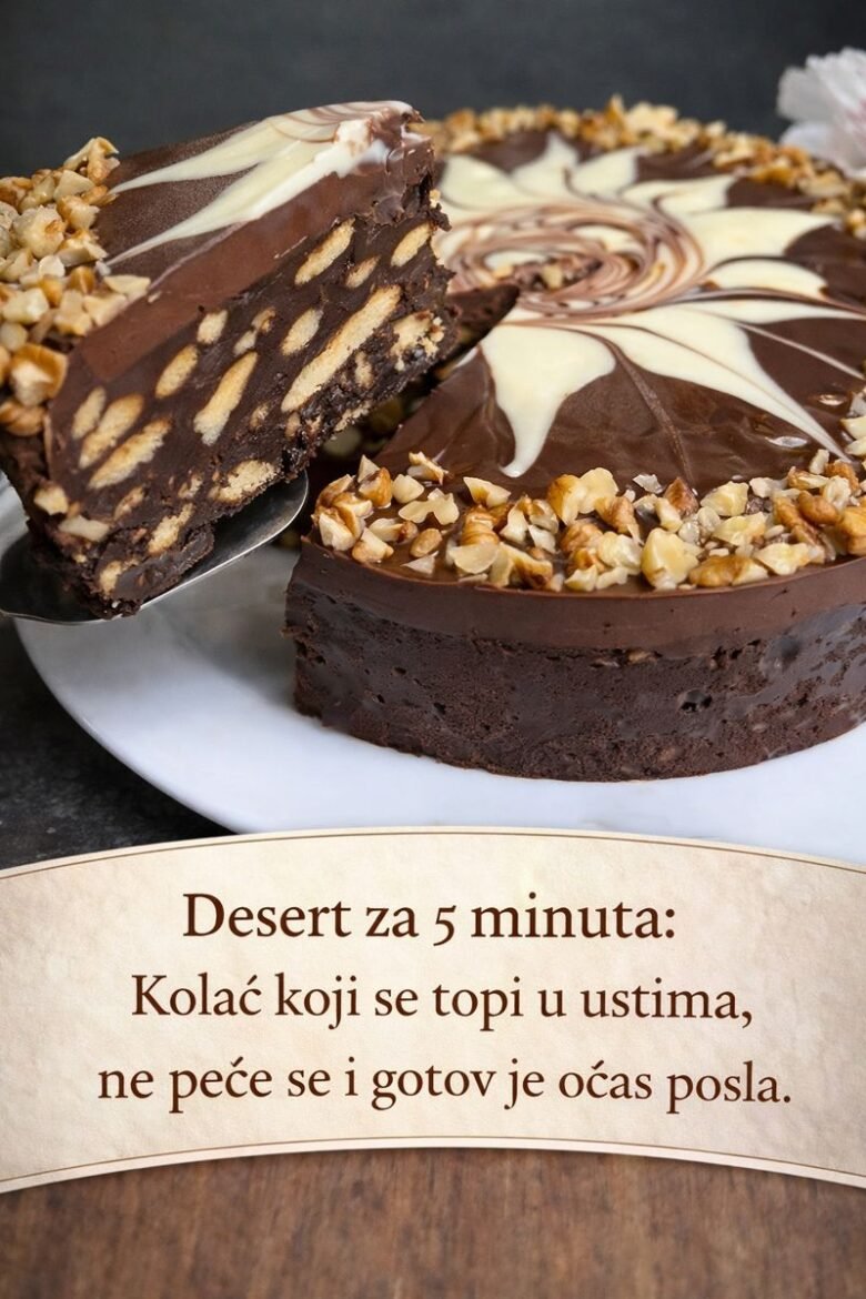 Desert za 5 minuta: Kolač koji se topi u ustima, ne peče se i gotov je očas posla. Ovaj desert je gotov za samo 5 minuta. Ima neverovatan ukus. Ako tražite lakši desert, probajte ovaj kolač. Sastojci: Keksi 400g. Kakao 50g mleko 200 gr putera 120 gr Šećer 100 gr vanilin šećer 2g Čokolada 120 …