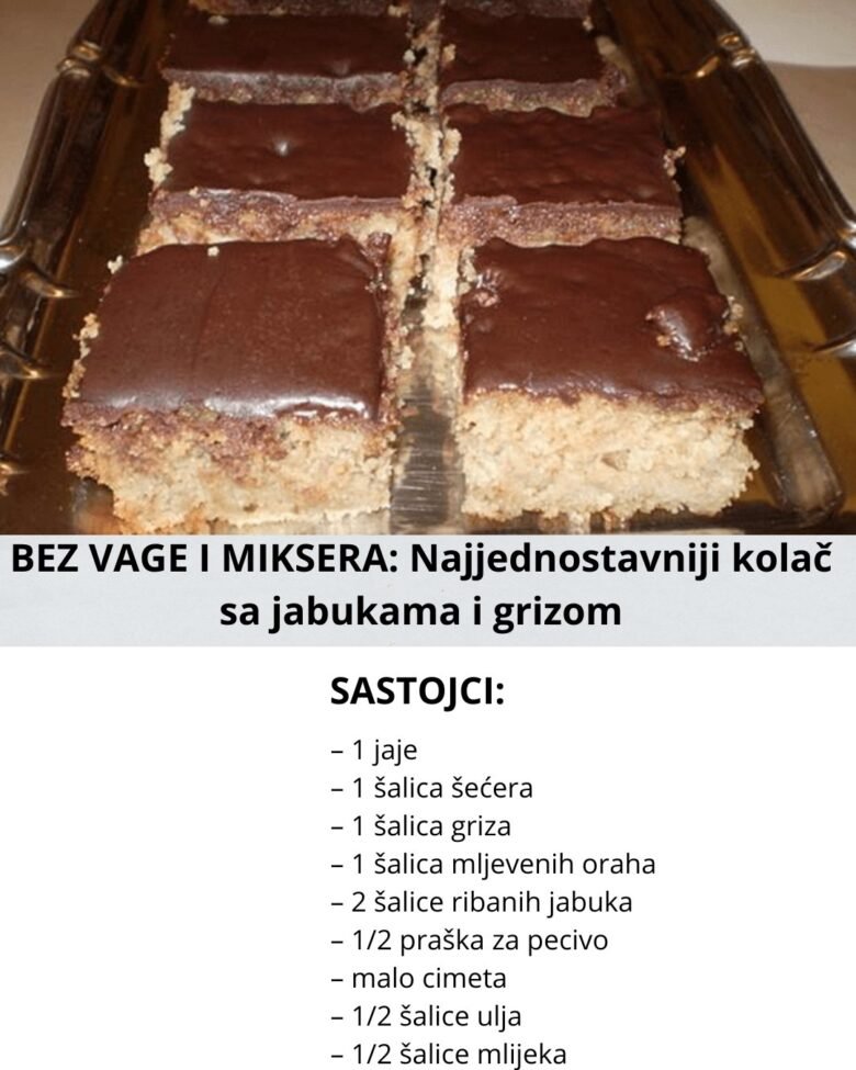 BEZ VAGE I MIKSERA: Najjednostavniji kolač sa jabukama i grizom