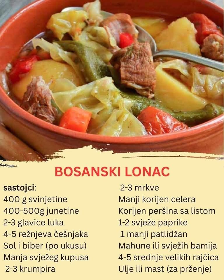 Bosanski lonac se danas kao sinonim vezuje uz mnogo toga, no izvorno je riječ o jelu bosanskih rudara. Kombinacija je to mesa i povrća koja se dugo i polagano kuha.