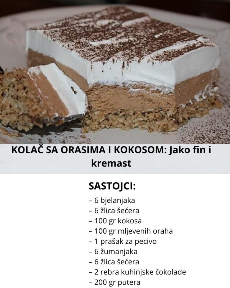 KOLAČ SA ORASIMA I KOKOSOM: Jako fin i kremast