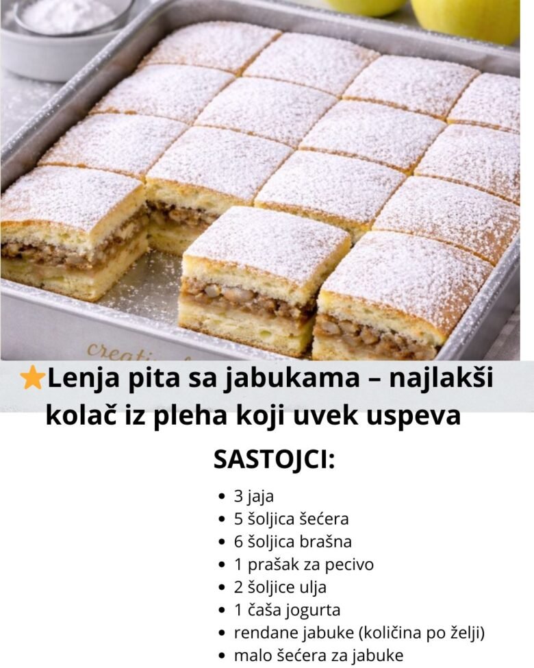 Lenja pita sa jabukama – najlakši kolač iz pleha koji uvek uspeva