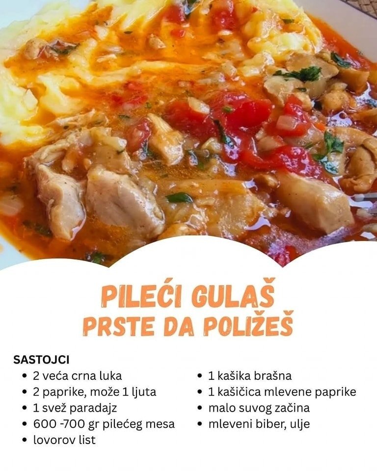 Uživajte u ovom jelu sa porodicom ili prijateljima, jer je pileći gulaš prava poslastica za sve ljubitelje srpske kuhinje. Svi će biti oduševljeni bogatstvom ukusa, a vi ćete uživati u jednostavnosti i praktičnosti pripreme.