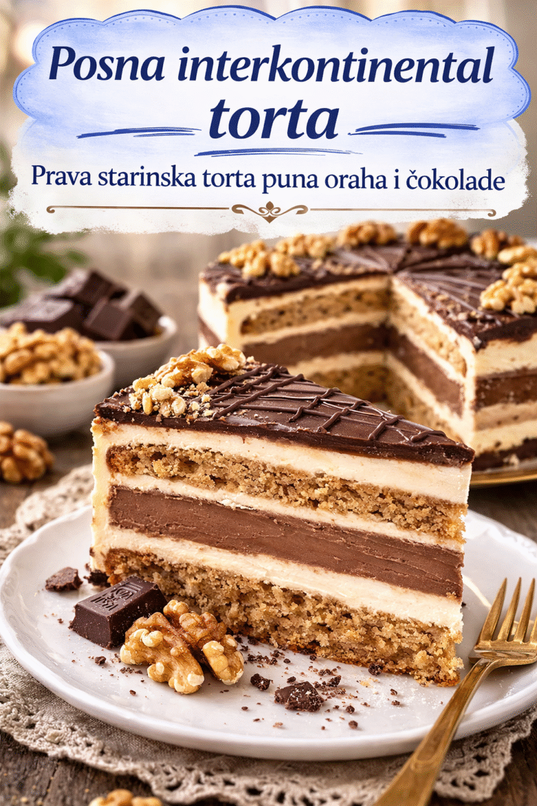 Posna interkontinental torta, prava starinska torta puna oraha i čokolade