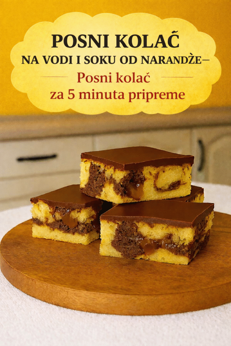 Ovaj posni kolač na vodi i soku od narandže je brz, jednostavan i veoma mekan. Pravi se bez jaja i mleka, a zahvaljujući soku od narandže ima laganu citrusnu notu. Idealan je kada vam se jede nešto slatko, a nemate puno vremena za pripremu.