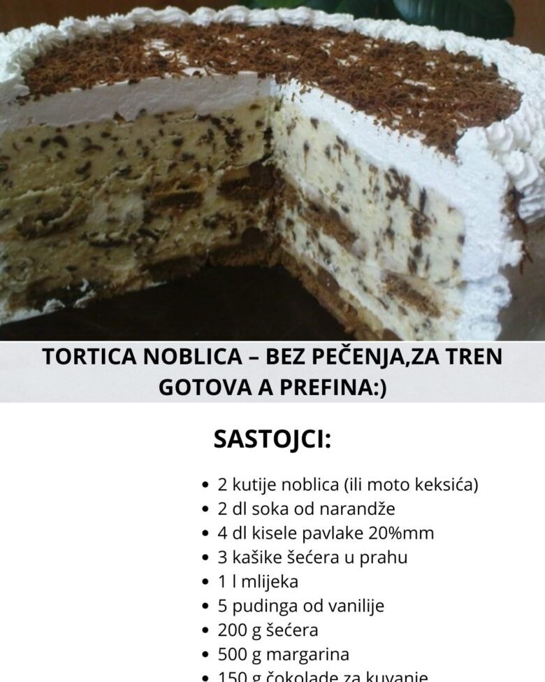 Drugu kutiju noblica umakati u sok, poslagati preko fila pa ih premazati sa ostatkom kisele pavlake.