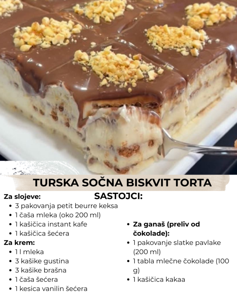 Reč je o biskvit torti s kafom, poznatoj u Turskoj kao “bisküvili pasta”. Jednostavna, bez pečenja, sa slojevima biskvita natopljenih kafom, preukusnim mlečnim kremom i savršenim čokoladnim ganašom.