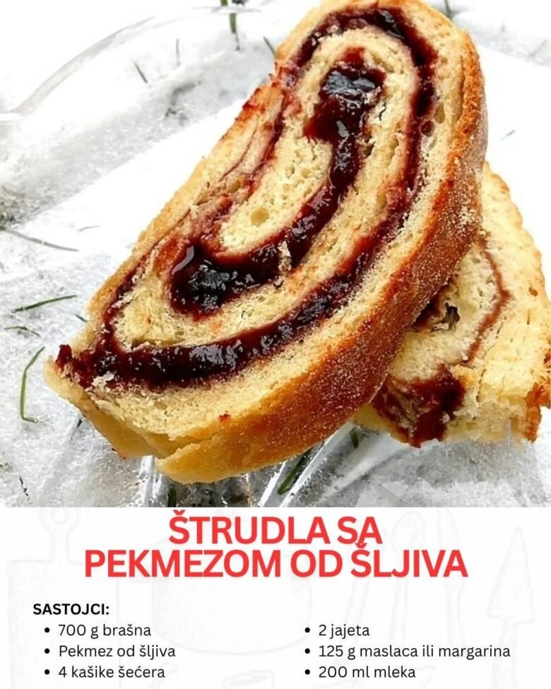Postoje recepti koji nisu samo hrana — oni su priča, sećanje i miris koji nas vraća u neke davne dane. Takva je i štrudla sa pekmezom od šljiva, ona tradicionalna, domaća, meka i mirisna, kakvu su pravile naše bake.