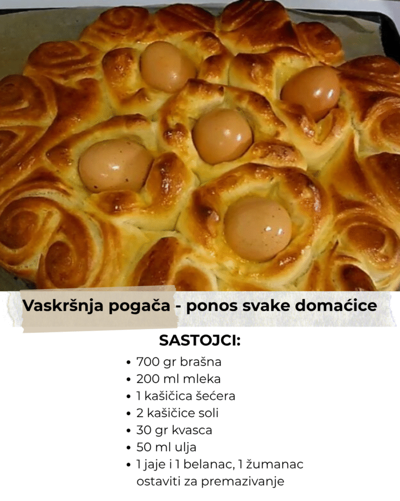 Vaskršnja pogača je sastavni deo svečane trpeze i u nju se pre pečenja stavljaju sveža jaja koja se pod ljuskom ispeku i dele ukućanima